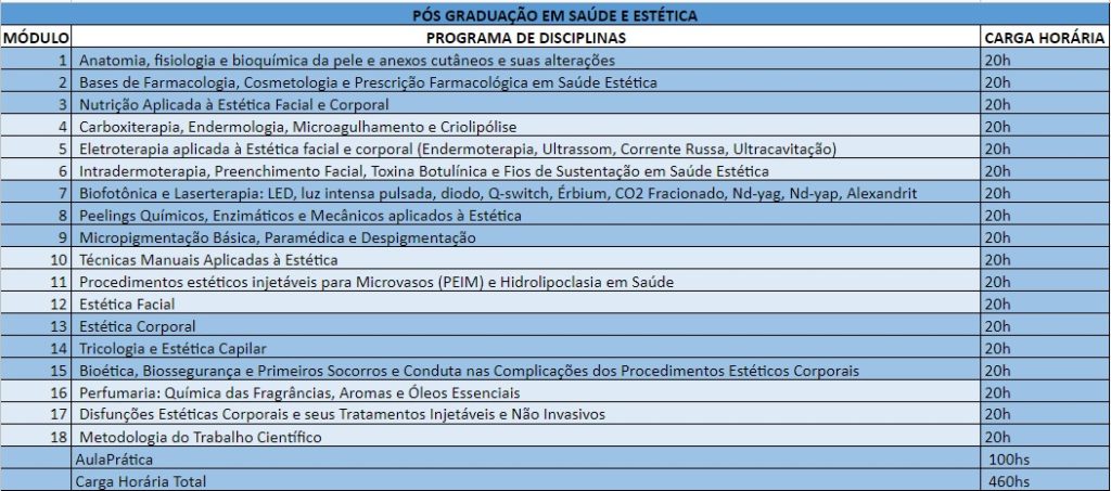Veja a grade curricular da sua Pós-Graduação em Estética e Saúde